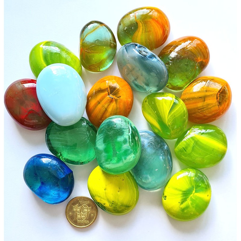 Stora glas-stenar - vackra att ha i trädgård, i vaser, till bröllop, som presenter mm