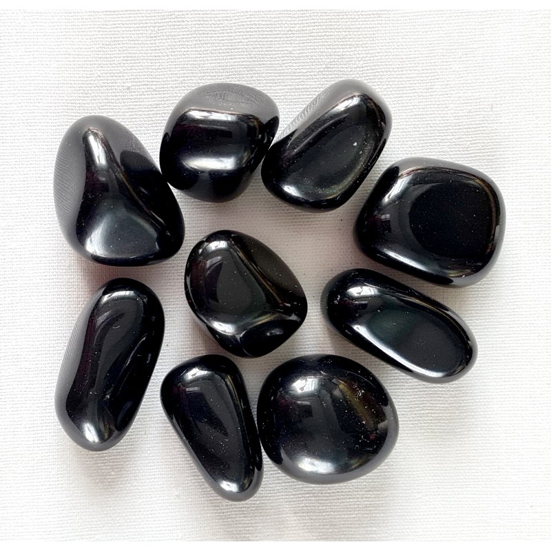 Trumlad svart Obsidian av bra kvalitet - ca 2-3 cm - säljes styckvis