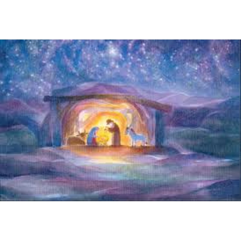Poster med bild på Maria o Josef, oxe o åsna vid krubban